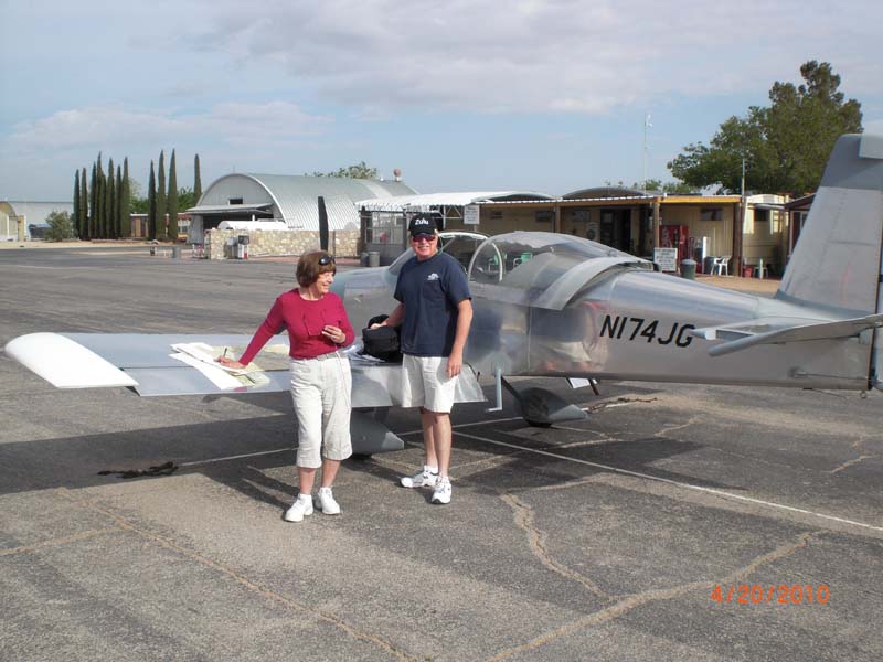 We liked Galveston and will have to return to see the old town waterfront. We got up early for us, 7:00 am, and got a ride to the airport from the hotel staff. I checked the weather and departed with overcast skies but VFR. We flew under the overcast until it became broken then on top at 8500 for the remainder of the trip to T27 El Paso’s Horizon airport. We could always look ahead on the Garmin 496 at the weather. They were really nice at all the airports where we stopped. The manager loaned us his personal car to drive to town for a hotel (no charge, only gas up). We were getting a bite to eat when we got a call from Gregg. He and Jan had flown from Orange to Junction TX about an hour out of Horizon airport. They wanted to stay in El Paso so made arrangements to go back to the airport and pick them up. We had a nice rest at the Microtel in El Paso, and Don finally got his Mexican dinner.